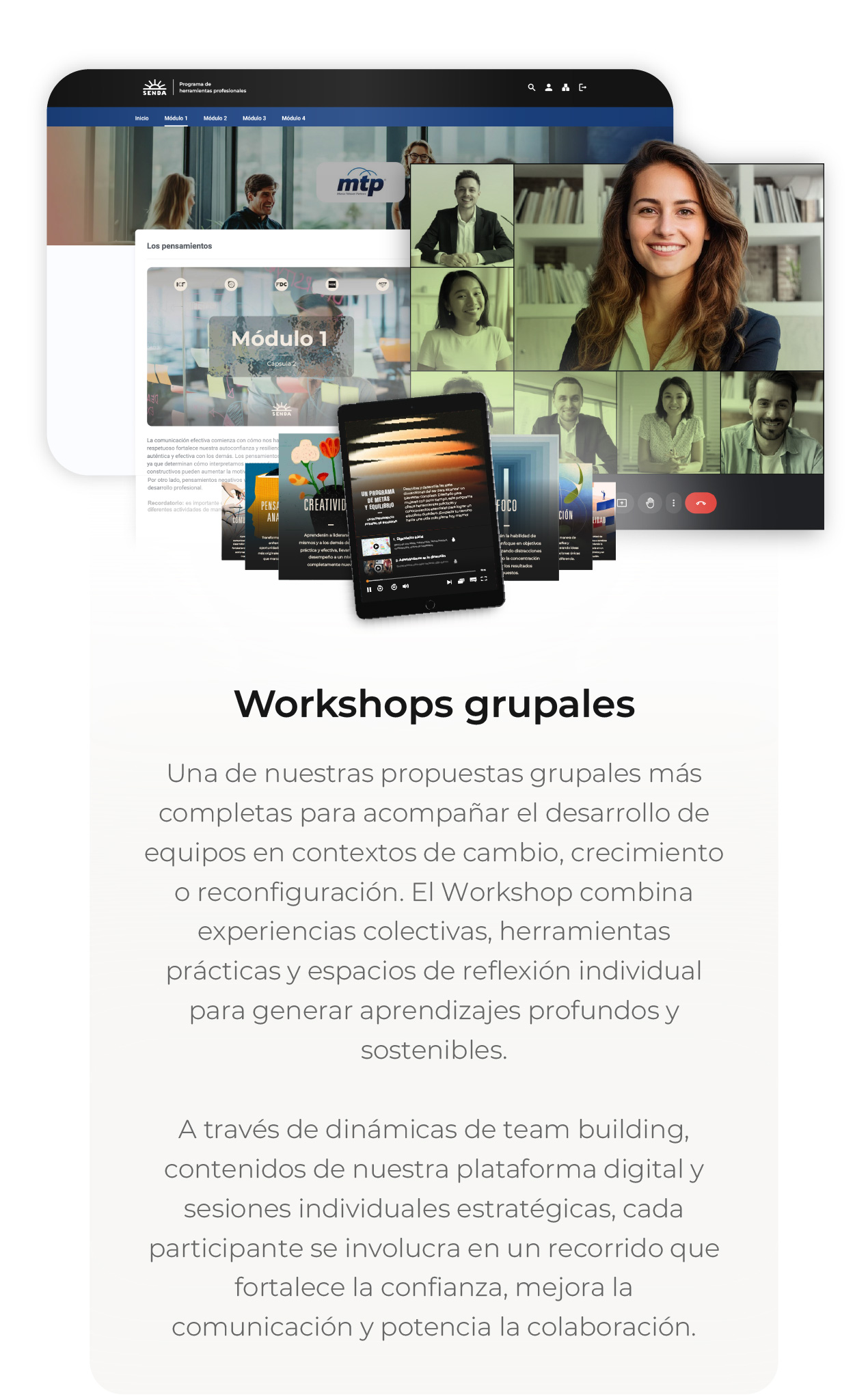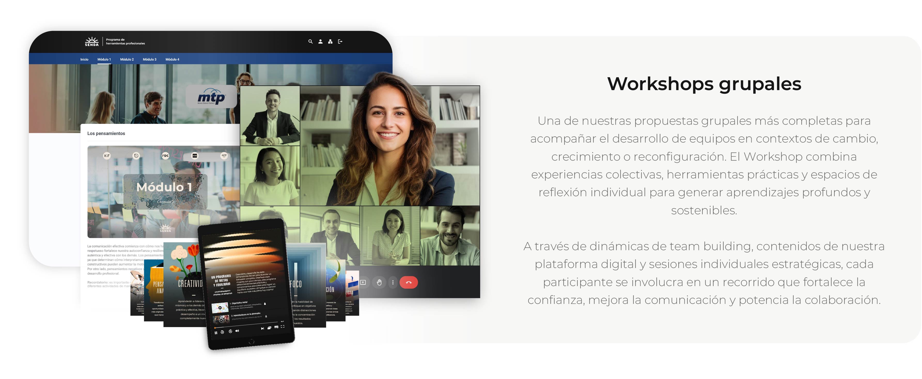 Ofrecemos programas tanto grupales como individuales, adaptándonos a las necesidades específicas de cada participante o equipos en su conjunto. Cada opción está diseñada para impulsar el crecimiento organizacional.
