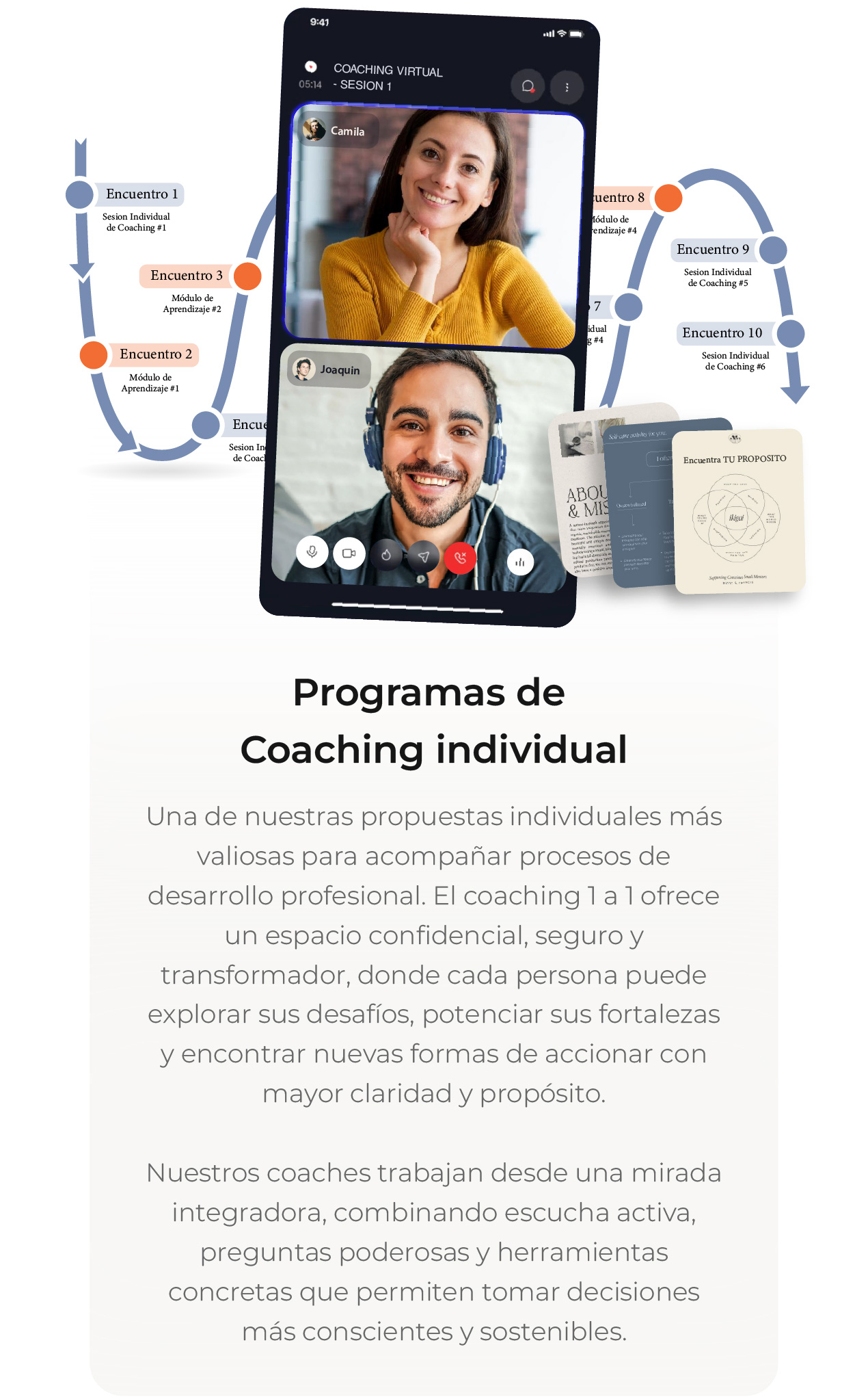 Contamos con propuestas sincrónicas (en tiempo real) y actividades asincrónicas (para realizar a tu propio ritmo en nuestra plataforma), asegurando que cada participante pueda avanzar según sus tiempos y necesidades.